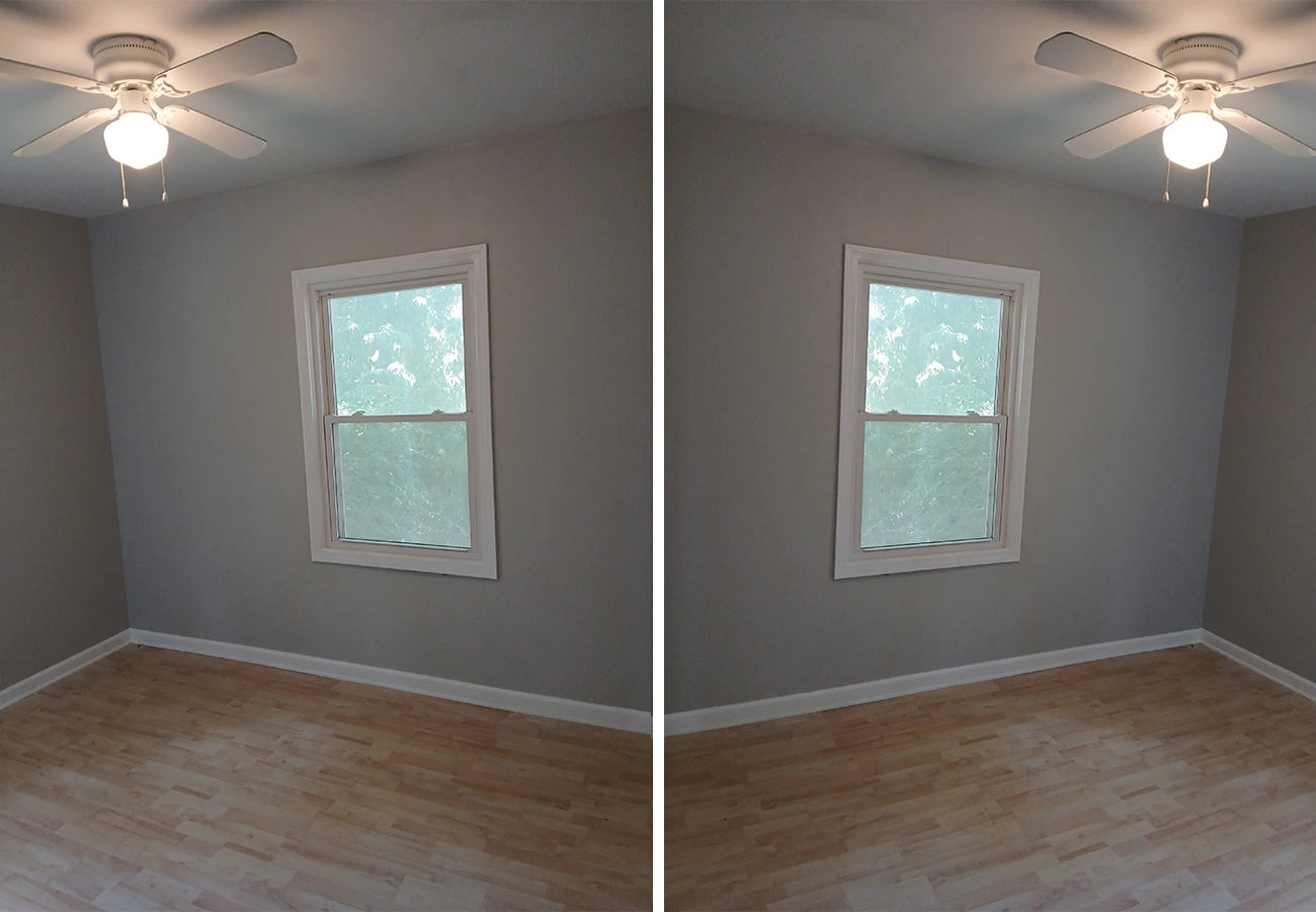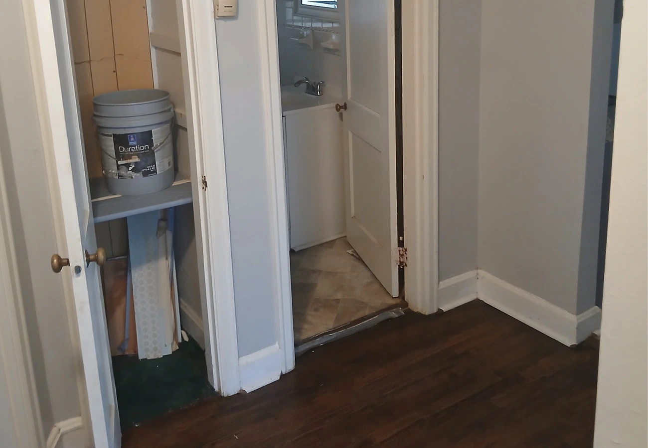 New drywall and fresh paint bring the space back to pristine condition.