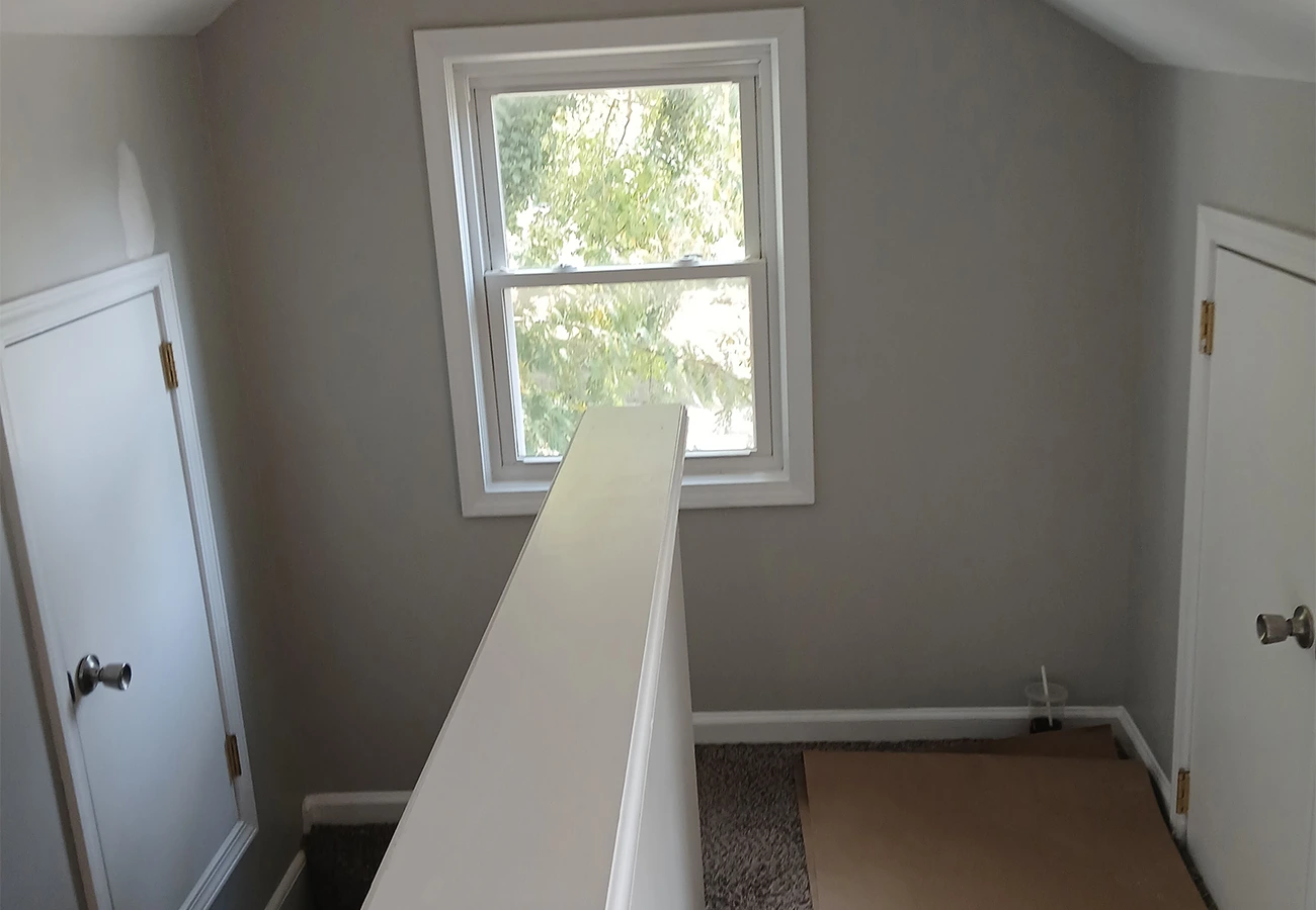 Crisp walls and trim that make even narrow spaces feel open, fresh, and inviting.