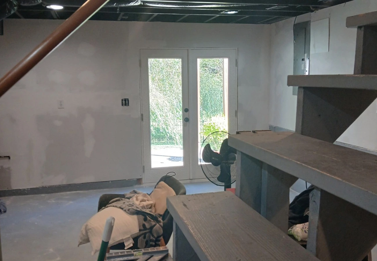 The space is cleaned, prepped, and partially rebuilt — ready for finishing touches.